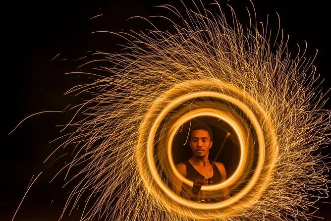 Sim, há música ao vivo e um show de fogo durante o jantar.