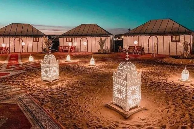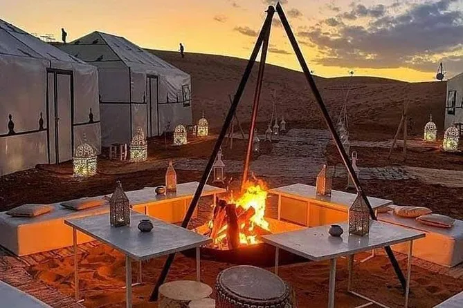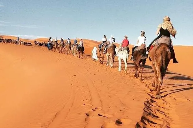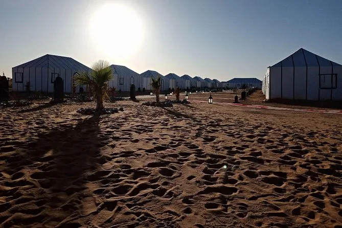 Seu tour inclui traslado de ida e volta nos hotéis de Fez e Marrakech, todo o transporte em veículo 4x4 confortável, uma noite em acampamento de luxo no deserto em Merzouga (com jantar e café da manhã), hospedagem em hotel 5 estrelas ou kasbah tradicional em Ouarzazate, além do seu simpático motorista-guia multilíngue durante toda a jornada.