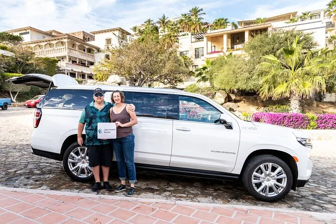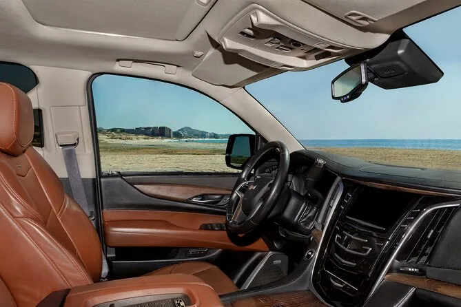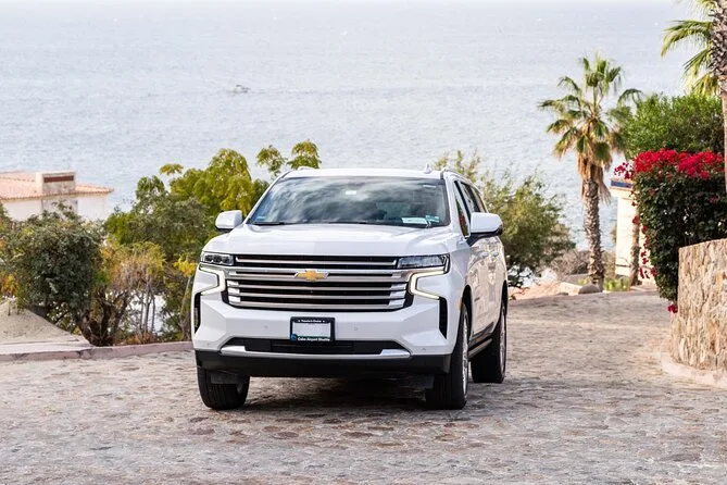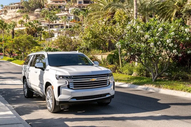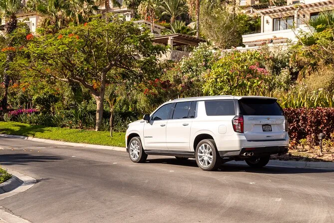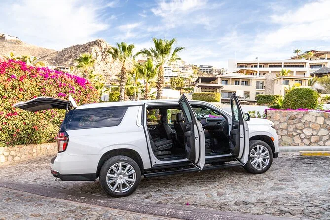 Sua reserva inclui transporte privado ida e volta em SUV com ar-condicionado do Aeroporto de Los Cabos até seu hotel no Corredor Turístico (e retorno), todos os impostos e taxas inclusos, além de água e cervejas geladas à sua espera no carro — é só relaxar e deixar o motorista local cuidar de tudo, da recepção até o desembarque.