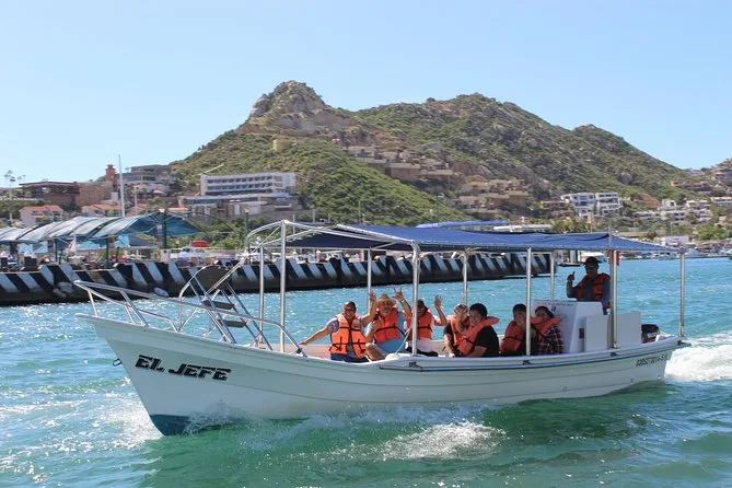 Seu dia inclui água engarrafada para todos a bordo, seguro para viajantes durante a atividade, todas as taxas e impostos pagos antecipadamente para evitar surpresas, além de um guia local bilíngue que conta histórias durante o passeio — e sim, há banheiro disponível no espaçoso barco de 30 pés com fundo de vidro enquanto você navega pelo famoso arco de Cabo.