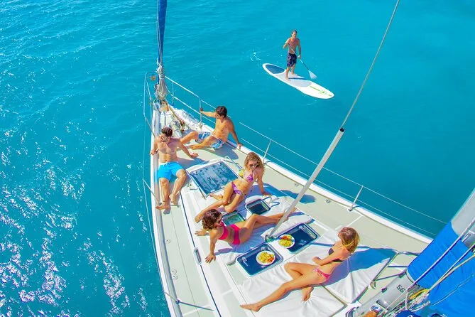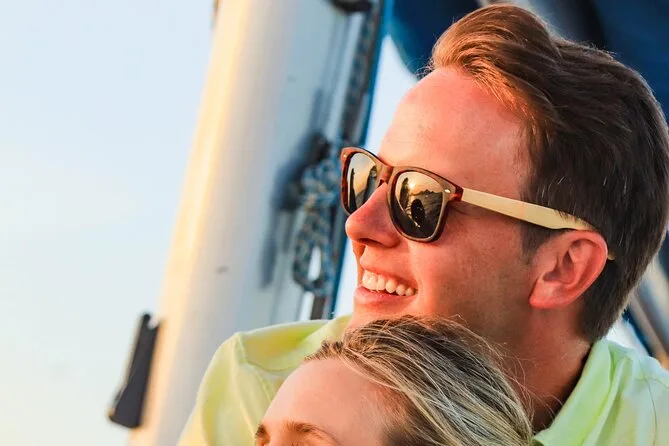 O passeio ao pôr do sol sai diariamente às 17h; há também opção de passeio com snorkel às 13h.