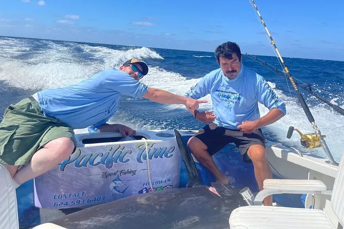 Não esperava tanta adrenalina quando a linha finalmente esticou — é bem diferente de só assistir pesca na TV. Luis me mostrou como firmar os pés e puxar devagar (“sem pressa”, ele repetia), e quando o yellowtail snapper apareceu brilhando prateado, me senti criança de novo. Tentamos pegar wahoo e até sailfish; pelo que disseram, dá pra personalizar o que você quer pescar se avisar antes. Tínhamos água geladinha na caixa térmica (simples, mas perfeita) e trocamos histórias com outro grupo que volta todo ano pra esse mesmo passeio — disseram que não pescam em nenhum outro lugar de Cabo San Lucas.