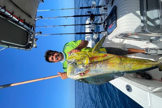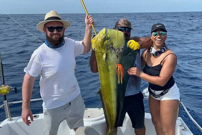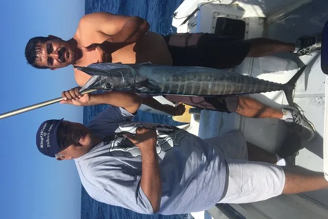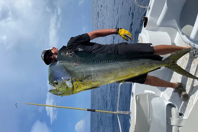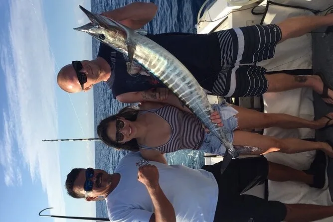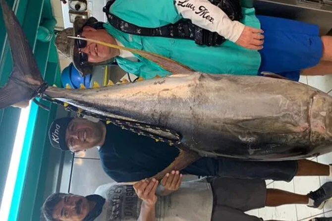 É possível pescar marlim, atum, wahoo, peixe-galo, yellowtail snapper ou sailfish, dependendo da época e do pedido.