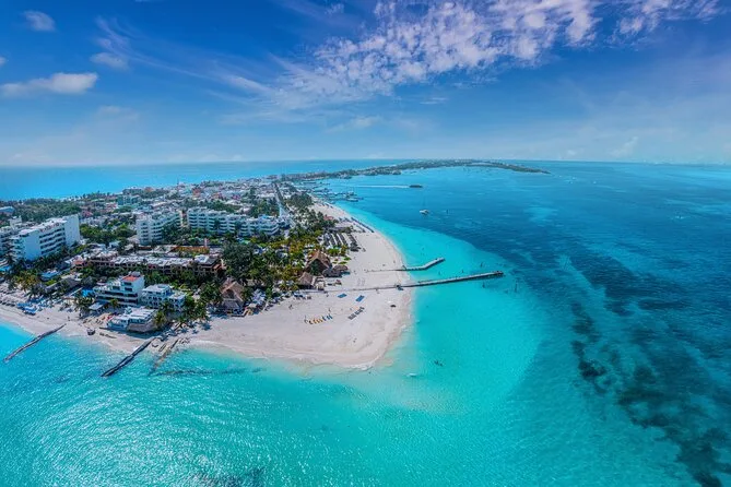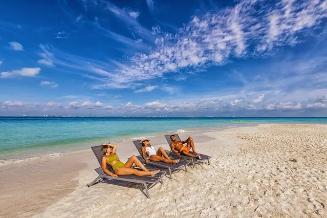 Você vai navegar de catamarã de Cancún até Isla Mujeres com guias locais que te fazem sentir em casa. Faça snorkel no Recife El Meco entre peixes e estátuas submersas, relaxe em um beach club exclusivo com almoço buffet e bar aberto, e termine o dia flutuando sobre Cancún na Torre Escénica — um daqueles passeios que ficam na memória quando a gente precisa de sol na alma.