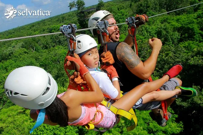 Seu dia inclui traslado do hotel em Cancún ou Riviera Maya, entrada no Selvatica Adventure Park com acesso a todas as 10 tirolesas (mais o banho opcional no AquaZip), passeio guiado de jipe pela selva, tempo para nadar em um cenote privado, água mineral durante o dia e um almoço leve antes do retorno.