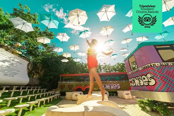 No Xenses Park perto de Cancún, você vai se perder em ilusões de ótica — ruas que encolhem, túneis no escuro total, jardins cítricos que despertam o olfato e escorregadores de lama mais quentes do que imaginam. Com transfer do hotel e entrada garantida, é só se jogar nessas experiências estranhas — e se divertir com você mesmo no caminho.