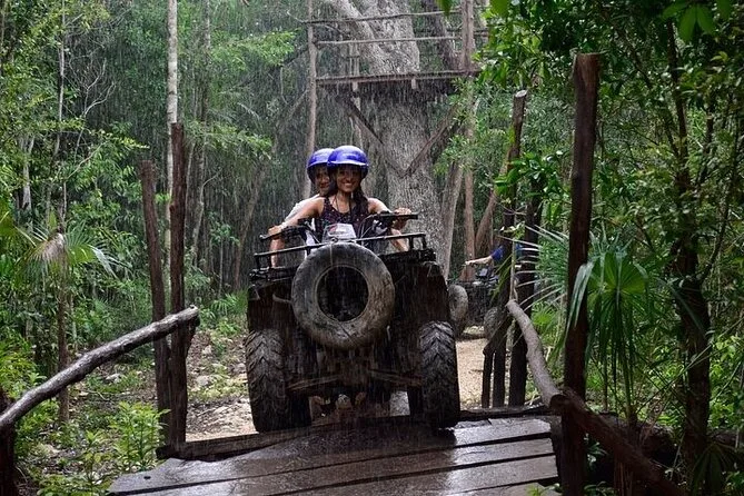Seu dia inclui transporte do hotel em Cancún ou Riviera Maya, todas as entradas para as atividades como circuito de ATVs, cavalgada (se habilitado), tirolesas com pontes suspensas, equipamentos de segurança como capacetes e coletes salva-vidas, banho refrescante no cenote com opções de salto ou entrada pela tirolesa, além de um lanche tradicional com fajitas de frango, acompanhamentos e água purificada para você voltar cansado, mas feliz.