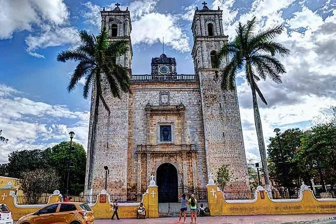 Valladolid tem ruas coloniais coloridas, mercados, igrejas e lojas locais — muitos visitantes adoram essa parada.
