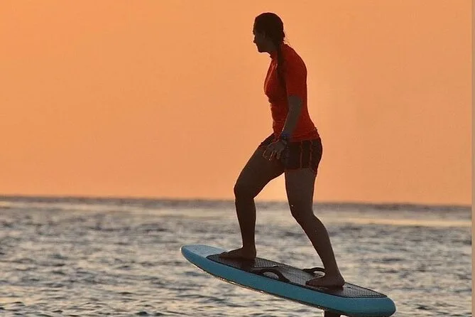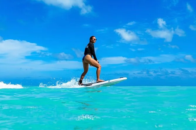 Seu dia inclui uma aula introdutória de e-surf na terra, seguida de prática guiada nas águas rasas de Cozumel, uso das pranchas elétricas e equipamento de segurança completo durante toda a sessão, além de acesso a uma área sombreada para descanso antes ou depois do passeio.