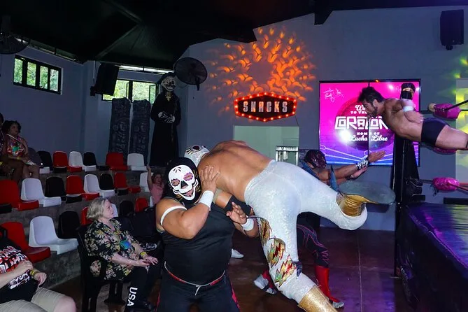 Você vai mergulhar no coração da Lucha Libre mexicana em Cozumel—torcendo com os locais, tomando sua margarita de boas-vindas no Barriecito e conhecendo os luchadores mascarados nos bastidores para fotos e autógrafos. Prepare-se para risadas, gritos e talvez se surpreender com o quanto vai se importar com o resultado.
