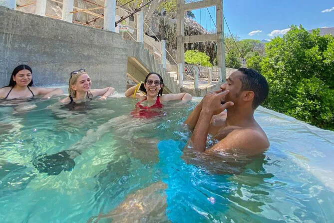 Você vai se banhar nas piscinas termais de Tolantongo no alto de um cânion selvagem, explorar grutas cheias de eco e atravessar uma ponte suspensa com um grupo pequeno e guia local. Espere risadas entre as pedras, ar com cheiro de minerais e tempo para relaxar na água quente ou fazer trilhas por cantos escondidos — antes de voltar para a Cidade do México com as pernas cansadas e aquela calma única que só uma aventura de verdade traz.
