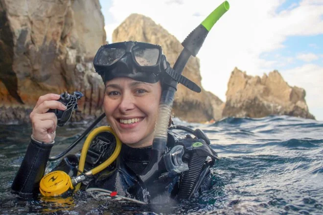 Ao chegarmos perto da Ilha Espíritu Santo, avistei pela primeira vez a colônia de leões marinhos. Os filhotes latindo e rolando nas pedras, quase sem nos notar. Luis nos deu um rápido resumo — como manter distância respeitosa, o que fazer se um leão marinho curioso nadar perto demais (dica: não entre em pânico, apenas flutue). Entrar na água foi como entrar em outro mundo. Peixes coloridos passavam rápido, e lá embaixo ouvi os cliques abafados dos golfinhos. A água estava fresca, mas nada gelada — na medida certa para despertar os sentidos.