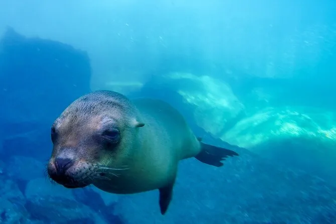 Você vai nadar com leões marinhos brincalhões, fazer snorkel entre peixes coloridos e relaxar na areia macia de Balandra — tudo em um grupo pequeno guiado por especialistas locais. Se quer contato real com a vida selvagem e curtir a beleza da Baja, esse tour é pra você.