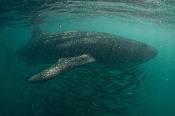 Você vai entrar na água azul e fresca perto de La Paz para nadar ao lado dos gentis tubarões-baleia — com guias certificados garantindo segurança e atenção para seu grupo pequeno. Prepare-se para o cheiro do mar, risadas compartilhadas com lanches no barco, fotos subaquáticas para guardar para sempre e aquela emoção ao ver a primeira sombra gigante passar.