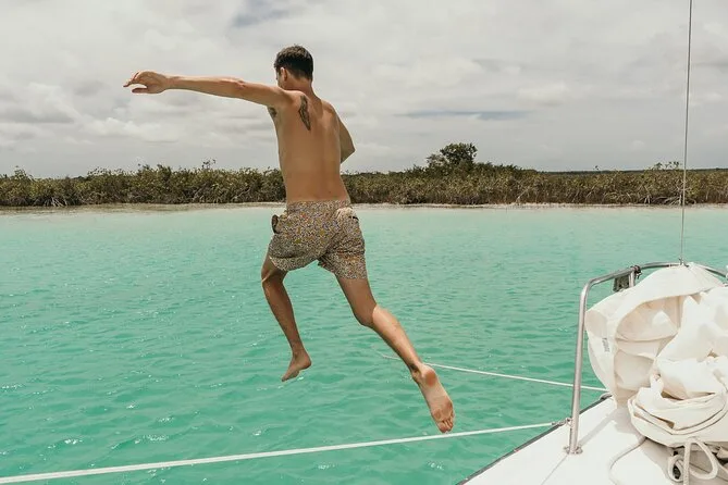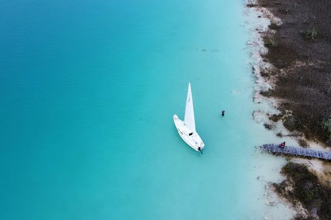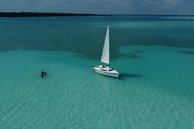 Seu dia inclui embarque no cais da Casa Sirena com um capitão local guiando seu veleiro particular pela Lagoa de Bacalar. Durante o passeio, você vai saborear frutas da estação — como manga e abacaxi fresquinhos — além de cerveja gelada e água, depois das paradas para nadar no Canal dos Piratas e na Ilha dos Pássaros, antes de voltar juntos para a margem.