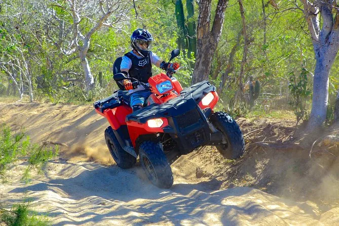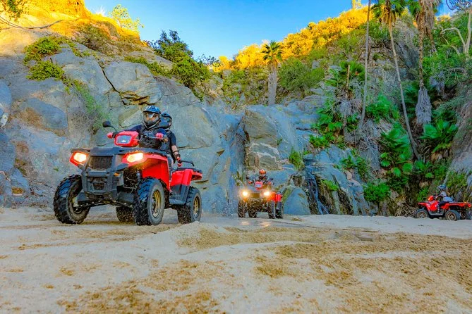 Você vai pilotar ATVs 4x4 pelo deserto selvagem da Baja perto de Los Cabos com um guia local, passando por cactos e riachos. Depois, aproveite um almoço buffet mexicano com vista para o mar (com opções vegetarianas), seguido de degustação de tequila e mezcal antes de voltar — com a pele beijada pelo sol e um sorriso no rosto.