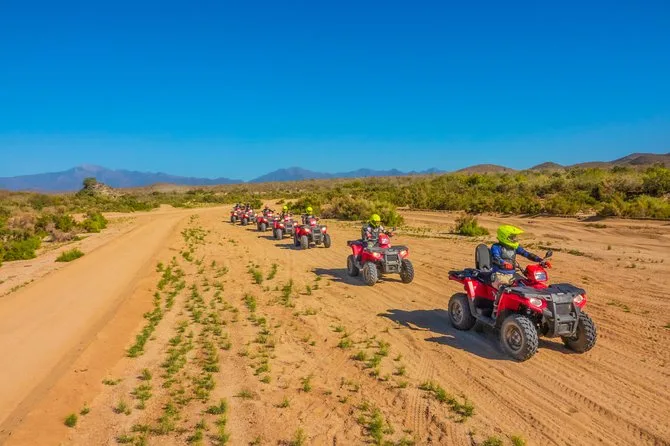 Seu dia inclui transporte ida e volta do hotel em van com ar-condicionado, todo o equipamento de segurança (capacete, luvas, óculos), uso de ATV 4x4 automático guiado por locais pelas trilhas do deserto da Baja, almoço buffet mexicano tradicional com opções vegetarianas em restaurante à beira-mar, além de degustação de tequila e cerveja antes do retorno ao hotel.