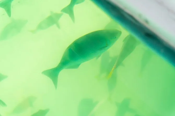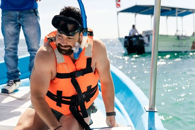 Quando chegamos em Pelican Rock para o snorkel, parecia que tínhamos descoberto um segredo local. Só dá para chegar de barco, então não tinha multidão. A água estava gelada no começo — um choque — mas depois você se acostuma e logo está flutuando sobre os recifes, cercado de peixes-papagaio por todos os lados. O guia ficava de olho na gente e mostrou um baiacu (quase engoli água do mar de tanta empolgação). Minha máscara embaçou duas vezes, mas era só mergulhar o rosto de novo. Tem algo mágico em nadar com cardumes que faz o tempo desaparecer — acho que ficamos mais tempo do que o combinado.