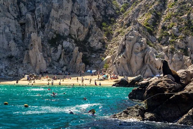 Você vai passear de barco com fundo de vidro pelo Arco de Cabo e pela colônia de leões-marinhos antes de fazer snorkel nos recifes de Pelican Rock com um guia local. O almoço é simples, mas perfeito depois do mergulho, seguido de degustação de tequila e tempo livre para explorar as lojas de San Lucas. Espere ar salgado, risadas e momentos que ficam para sempre.
