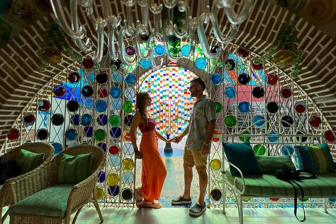 Quando voltamos para a terra firme — com as pernas ainda bambas do balanço do barco — entramos numa van para o passeio pela cidade. Nossa guia, Marisol, era uma fonte inesgotável de histórias; ela apontava os hotéis na orla e logo nos levou para a Fábrica de Vidro. Lá dentro, o cheiro era uma mistura de areia quente com açúcar queimado (não era ruim), e assistimos um artesão moldar o vidro derretido em algo delicado enquanto o amigo dele brincava com ele em espanhol. Tentei dizer “lindo” em espanhol — Marisol riu e me corrigiu com carinho. O barulho lá dentro é maior do que você imagina, com todo aquele tilintar.
