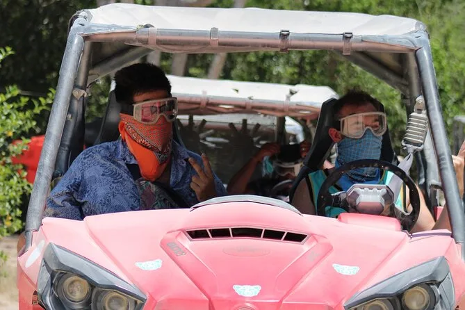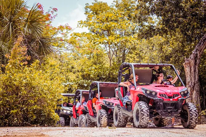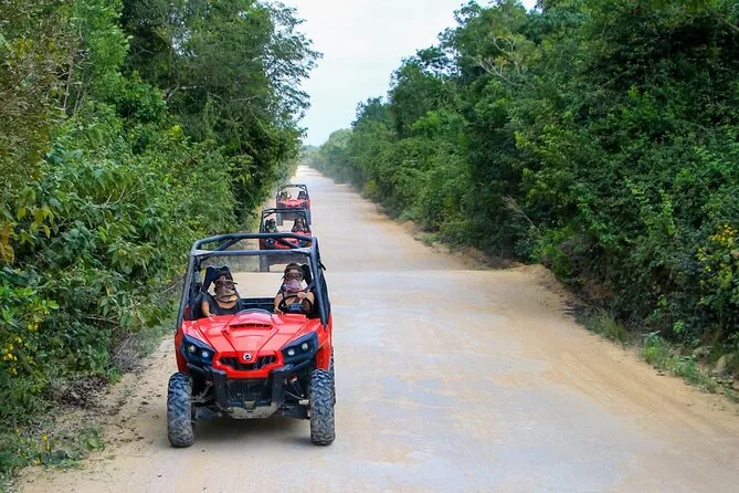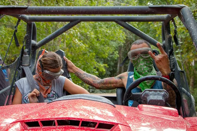Seu dia inclui transporte de ida e volta dos hotéis na área de Playa del Carmen (não Cancun), uso de buggy CAN AM para duas pessoas, óculos de proteção para motorista e passageiro, guia local falando inglês, francês ou espanhol durante toda a experiência, equipamento de mergulho para explorar um cenote natural, além de água fresca e lanches leves para aproveitar antes de voltar com as roupas sujas de lama, mas o espírito lá em cima.