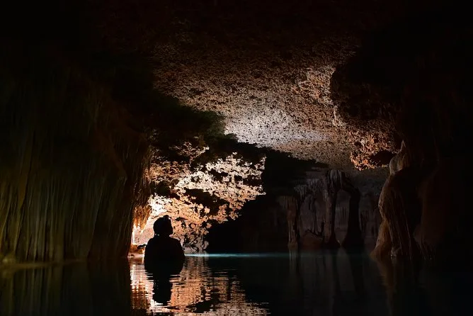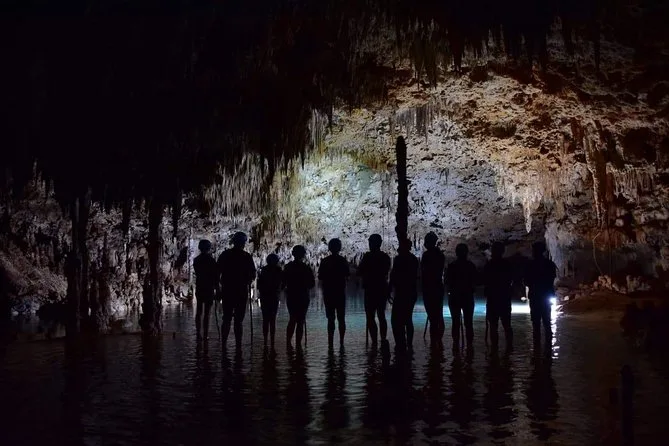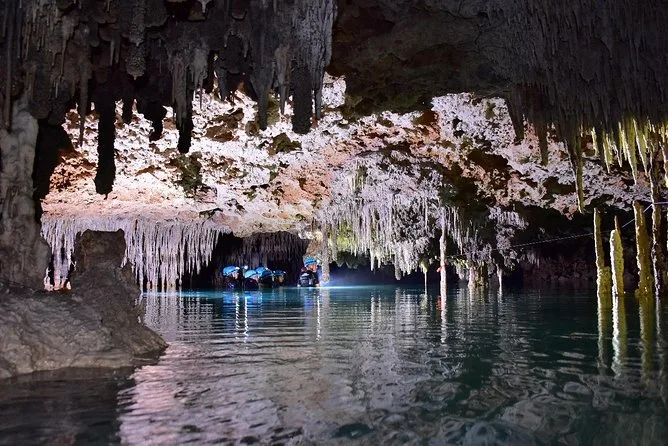 Seu dia inclui todo o equipamento para explorar as cavernas do Rio Secreto — capacete, roupa de neoprene, sapatilhas aquáticas — e o acompanhamento de guias locais. Conforme sua escolha na reserva, há transporte de ida e volta dos hotéis selecionados em Playa del Carmen. Depois de nadar pelo rio subterrâneo, aproveite um buffet com pratos tradicionais maias antes de retornar à superfície.