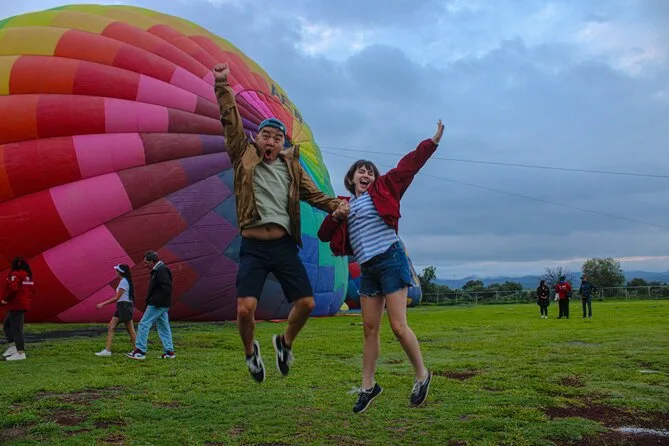 Seu dia inclui traslado ida e volta do hotel no centro da Cidade do México (se selecionado), café e biscoitos na chegada em Teotihuacan, voo de balão ao nascer do sol com filmagem por drone, café da manhã tradicional (com opção de caverna), degustação de pulque e licor de xoconostle com artesãos locais, explicações sobre obsidiana e plantas de maguey com seu guia, tempo livre para explorar ou subir parte das pirâmides, além do retorno ao hotel ou ponto de encontro no início da tarde.