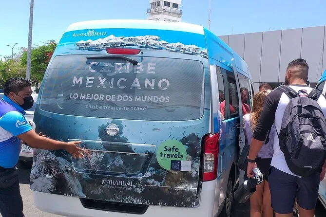 Seu passeio inclui transporte privado em veículo moderno com ar-condicionado, ida e volta entre o Aeroporto Internacional de Cozumel e seu hotel ou resort, além de assistência completa com as malas pelo motorista — para você não precisar carregar nada ao chegar ou partir.