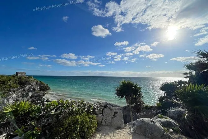 Seu dia inclui traslado do hotel ou Airbnb em minivan particular com ar-condicionado, todas as entradas para as ruínas de Tulum e o cenote escolhido, equipamento de snorkel de alta qualidade e coletes em Akumal (com taxa de cooperação incluída), almoço tradicional mexicano perto do cenote com bebidas durante todo o dia — e retorno ao seu local quando desejar.