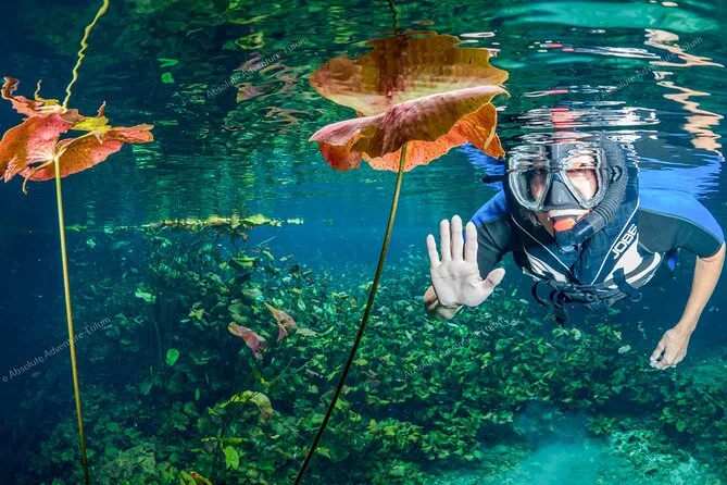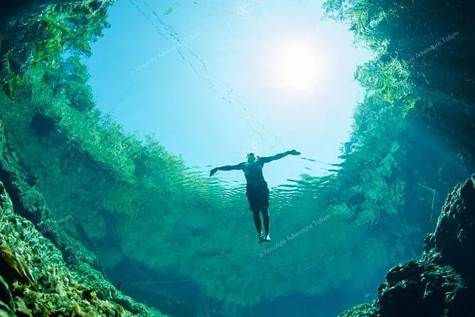 É necessário ter habilidades básicas de natação, pois o passeio inclui snorkel no cenote e no mar.