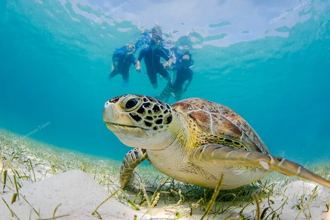 Vimos mais duas tartarugas e uns peixes azuis vibrantes antes de voltar para a praia. No caminho de volta, fiquei revivendo aqueles momentos debaixo d’água — como o silêncio tomava conta quando todo mundo parava, até o Diego parecia relaxado flutuando com a gente. Se você quer algo privado, mas sem formalidade, esse passeio saindo de Tulum ou Playa del Carmen fica na memória muito depois da pele secar.