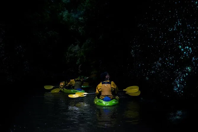 Eu imaginava que os vagalumes seriam pequenos e difíceis de ver, mas deslizar por aquele cânion no escuro é difícil de explicar sem parecer exagero. Eles realmente pareciam estrelinhas espalhadas dos dois lados do riacho. Todo mundo ficou em silêncio, exceto uma pessoa que sussurrou “uau” e depois riu de si mesma. Na volta, ninguém teve pressa. Só o som suave dos remos cortando a água escura e aqueles pontos de luz azul-esverdeada nos guiando para casa. Até hoje penso naquele instante — como era pequeno e calmo flutuar ali.