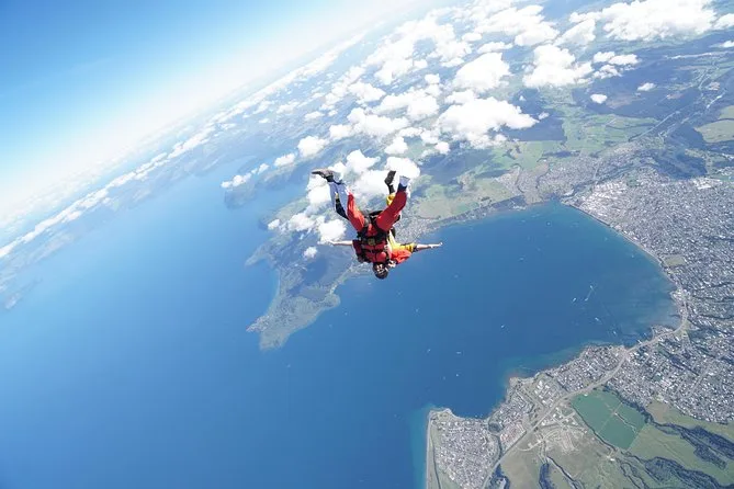 Seu coração vai disparar nesse salto tandem de 12.000 pés sobre o Lago Taupo — voando sobre vulcões com um guia profissional colado nas suas costas. Aproveite o transfer do hotel, equipamento completo (até um buff pra levar de lembrança) e espaço para família e amigos assistirem na área de pouso. A adrenalina da queda livre vira uma calma impressionante enquanto você flutua — uma memória pra vida toda.