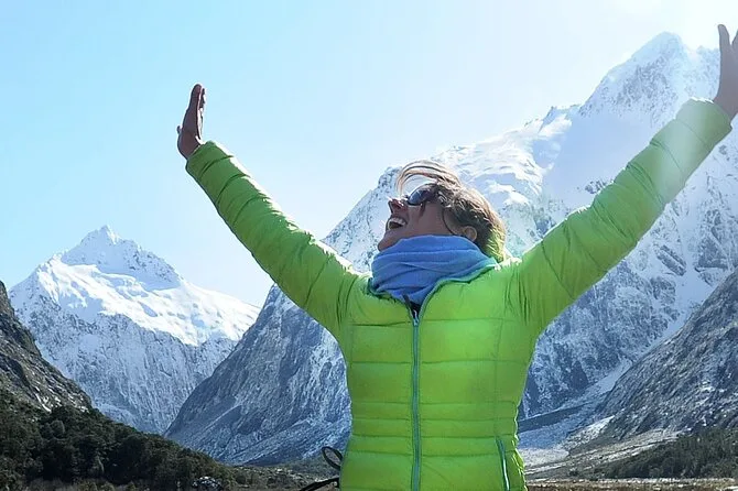 Seu dia inclui transporte de ida e volta do seu alojamento em Te Anau, viagem em uma van confortável com no máximo 15 pessoas mais a guia local Anna (ou alguém tão animado quanto ela), várias trilhas curtas guiadas em paradas cênicas na Milford Road adaptadas ao clima, um cruzeiro em barco pequeno por todo Milford Sound até o Mar da Tasmânia — com tempo para cachoeiras e observação de animais — e um piquenique (avise se precisar de opções vegetarianas ou sem glúten). Cadeirinhas para crianças pequenas estão disponíveis se informar as idades na reserva.