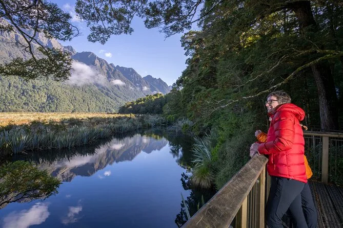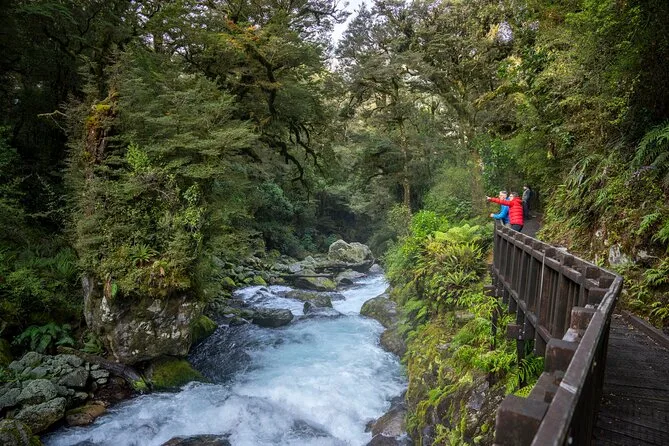 O passeio dura o dia todo, incluindo transporte de Te Anau, várias paradas para trilhas e fotos, além de um cruzeiro de 2 horas em Milford Sound.