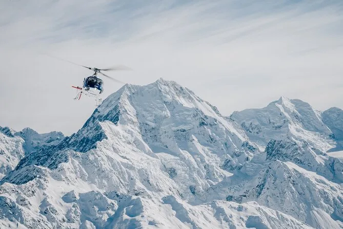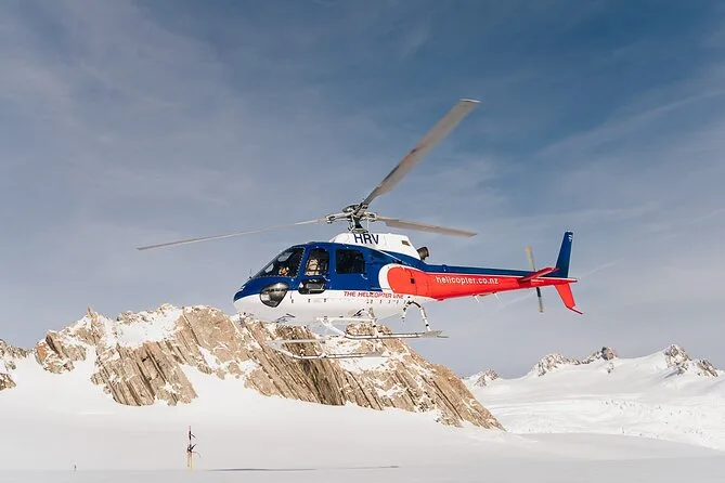 Sua experiência inclui um voo panorâmico de 55 minutos de helicóptero sobre Aoraki/Mount Cook, Glaciares Tasman, Franz Josef e Fox, com comentários do piloto local. Há um pouso na neve alpina (sazonal), o imposto GST está incluso, e todos têm tempo para aproveitar o ar das montanhas antes do retorno — uma lembrança que fica para sempre.