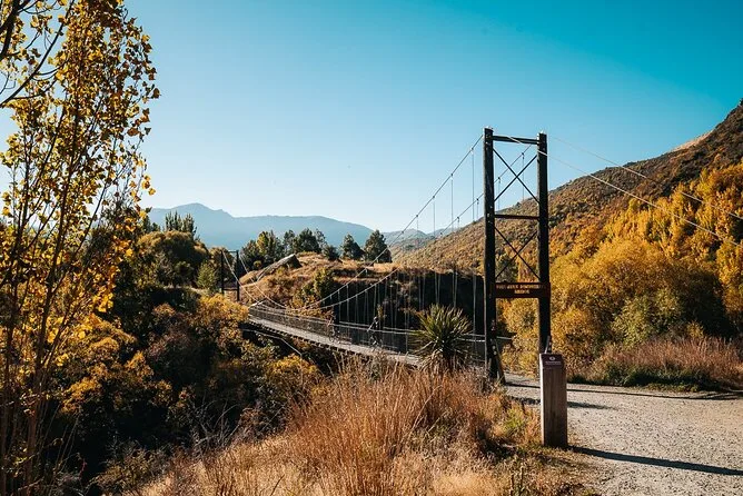 Seu dia inclui transfer de ida e volta entre Queenstown, Arrowtown e Gibbston Valley; bicicleta pedal premium (com opção de upgrade para e-bike); capacete, mapa, cadeados e kit de reparo; além de uma sessão de orientação com guia local antes de seguir pelas trilhas à beira do rio rumo às vinícolas de Central Otago.