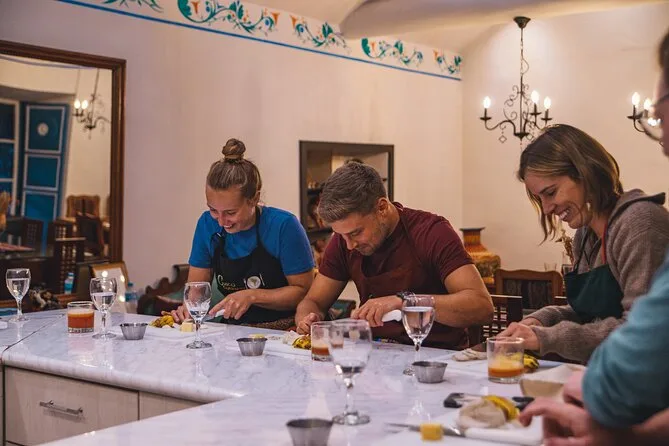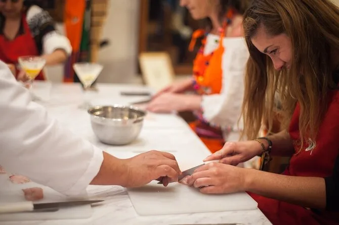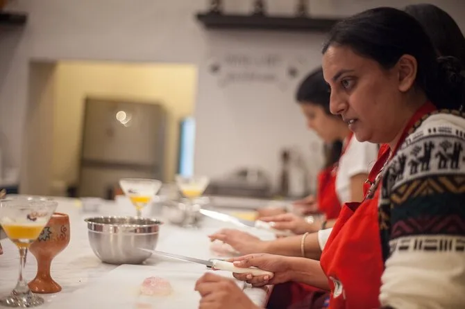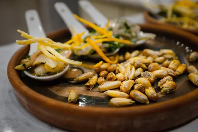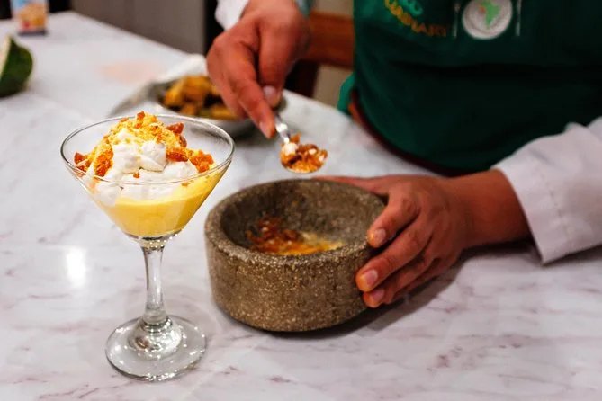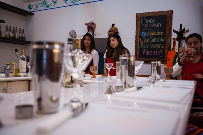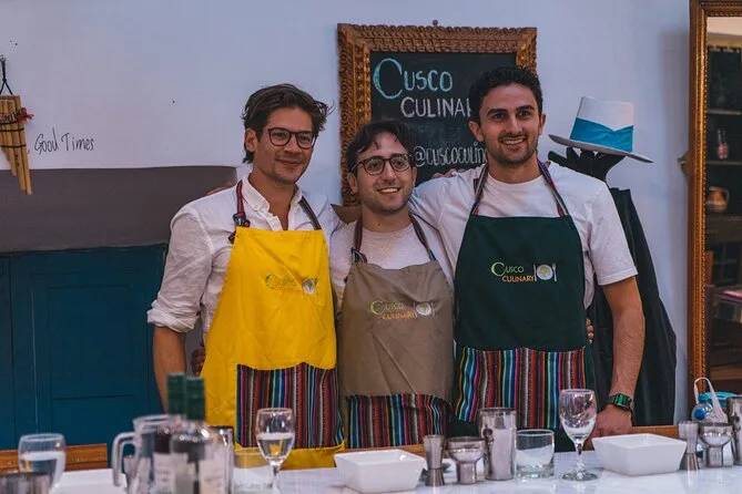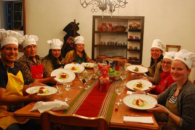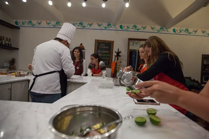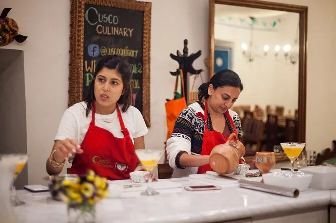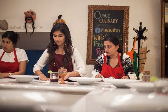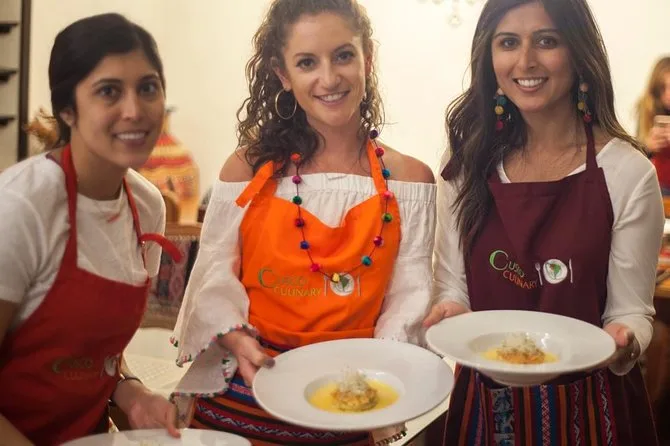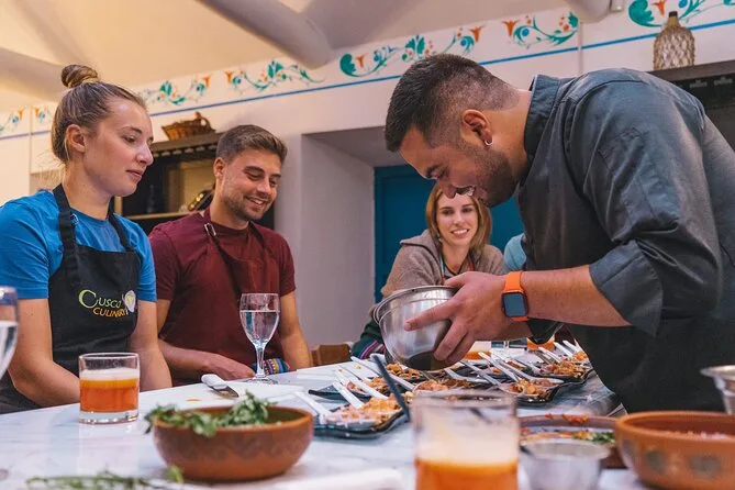 Seu dia inclui todos os ingredientes para cada prato do menu vibrante — ceviche trio, sopa cremosa de mashua, pimenta recheada e nhoque de lúcuma — além da degustação de frutas no Mercado San Pedro com seu chef-guia bilíngue. Bebidas como pisco sour e chicha morada também fazem parte; é só chegar com fome e pronto para cozinhar junto com os locais no centro de Cusco.