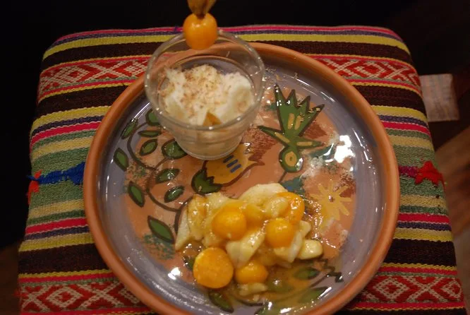 O menu vibrante foi mais criativo do que eu esperava: sopa cremosa de mashua com milho roxo crocante, pimenta recheada com cogumelos e batatas nativas. Na sobremesa (nhoque de lúcuma com sorvete de fruta-do-conde), todo mundo já trocava histórias sobre comida de casa. Parecia menos uma aula e mais um almoço entre amigos que acabaram de se conhecer — só que com ingredientes muito melhores.