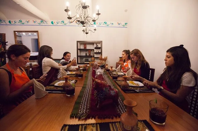 Você vai explorar o Mercado San Pedro com um chef local, provar frutas e conhecer ingredientes andinos antes de ir para uma cozinha aconchegante para cozinhar na prática. Prepare seu próprio pisco sour de maracujá, pratos tradicionais peruanos (até alpaca!) e finalize com a sobremesa feita por você. Risadas, sabores novos e histórias reais garantidas.
