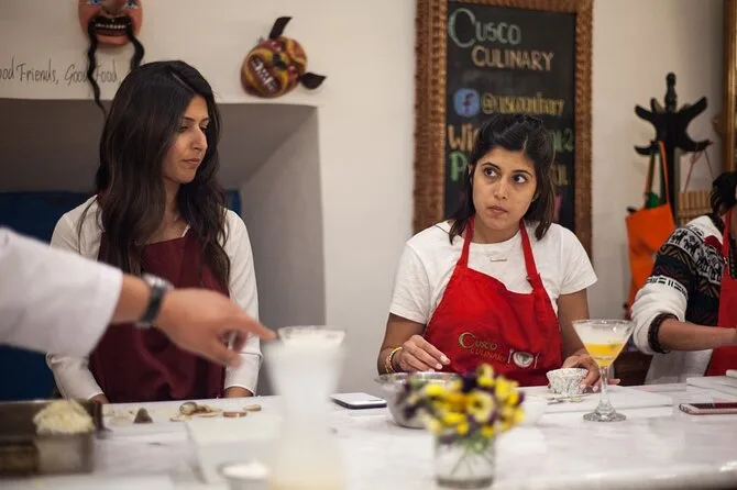 Inclui um pisco sour e bebidas não alcoólicas durante a aula.