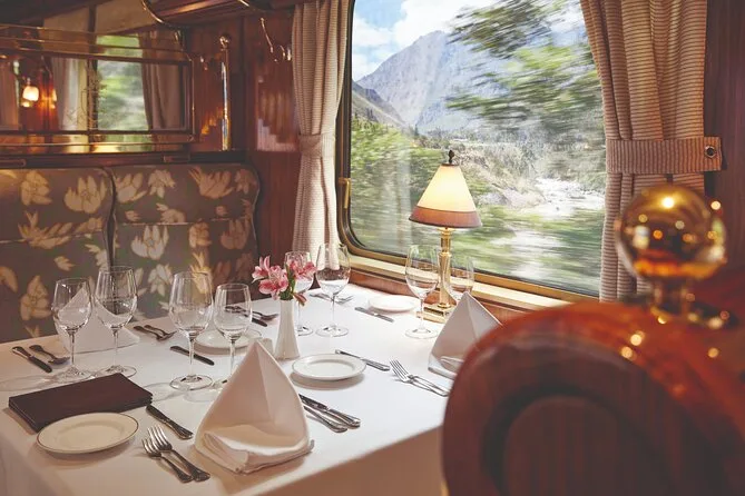 Seu dia inclui traslado privado de ida e volta do hotel em Cusco, viagem de luxo de ida e volta no trem Hiram Bingham com refeições gourmet e bebidas em ambas as viagens, transfers exclusivos até a entrada de Machu Picchu só para passageiros, ingressos para Machu Picchu com tour guiado profissional pelas ruas e templos antigos, além de um elegante chá da tarde servido no Sanctuary Lodge antes do retorno a Cusco.