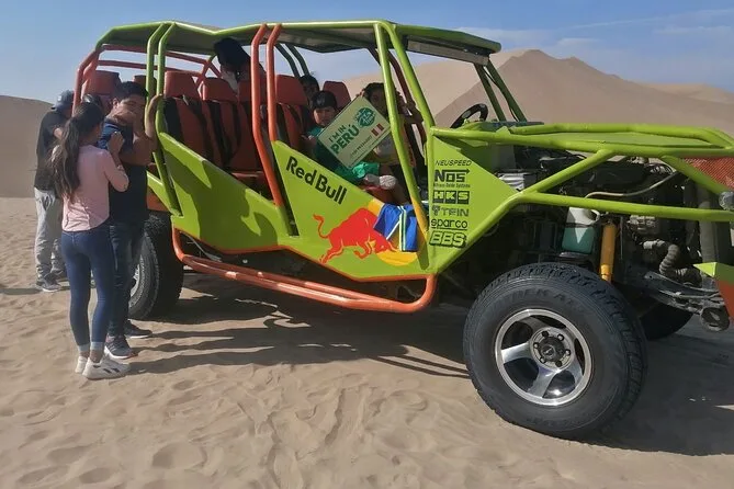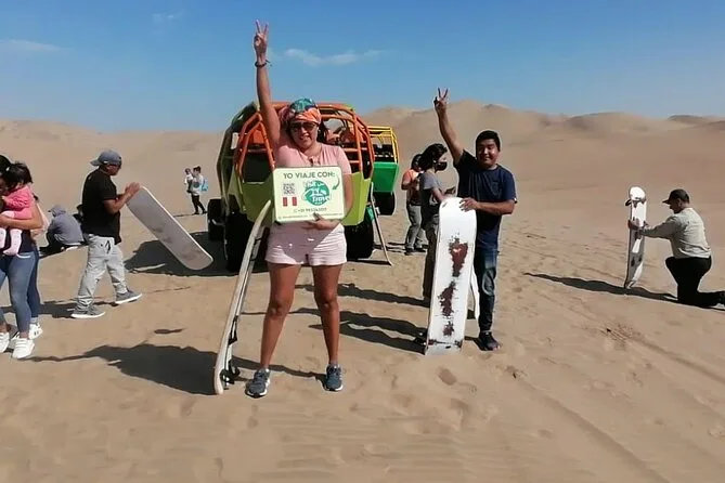 Seu dia inclui um passeio de barco de 2 horas pelas Ilhas Ballestas (com entrada inclusa), observação da vida selvagem com guia bilíngue, todo o equipamento para buggy e sandboard em Huacachina (com entrada), transporte confortável com ar-condicionado o dia todo e opções flexíveis de traslado se precisar.