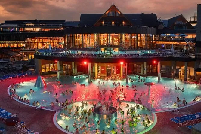 O passeio inclui transporte ida e volta saindo do hotel em Krakow, ingressos para as Termas de Chochołów (com acesso às piscinas e toboáguas) e para o funicular da montanha Gubałówka, além da degustação do queijo Oscypek com vodka na cabana do pastor, garantindo um retorno relaxado ao final do dia.