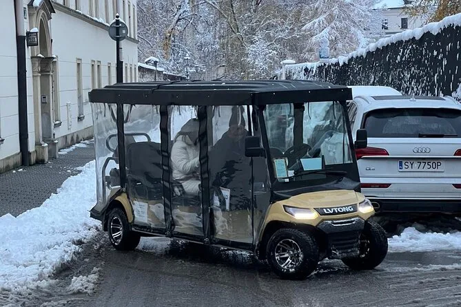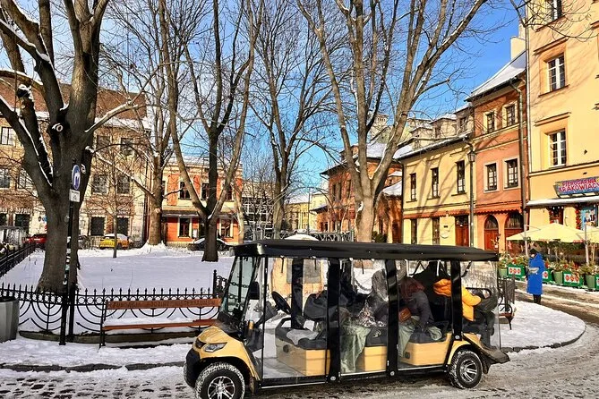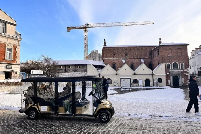 Seu dia inclui transporte privado em golf buggy elétrico aquecido com pickup no hotel próximo ao centro de Krakow, todas as taxas e ingressos inclusos, enquanto seu guia local mostra os pontos da Cidade Velha e Kazimierz, retornando com conforto.
