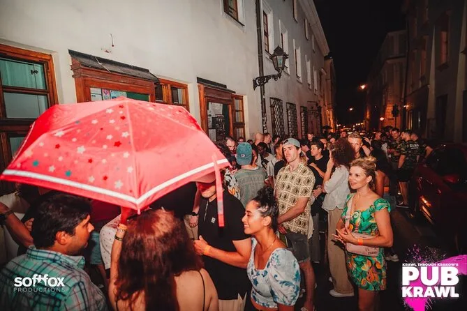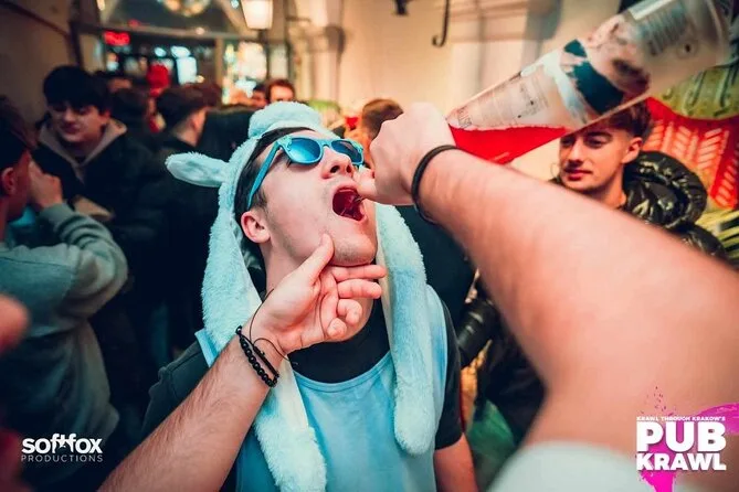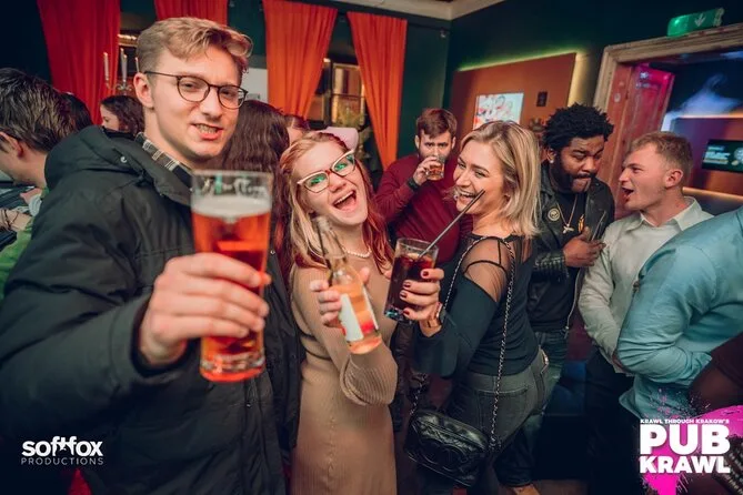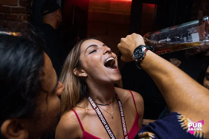 Junte-se a outros viajantes em Krakow para um pub crawl que começa no Monumento a Adam Mickiewicz, com open bar, shots de boas-vindas em cada lugar, concursos divertidos com prêmios e fotos espontâneas feitas por um guia local que anima a noite. Prepare-se para rir, fazer amigos e sentir que pertence à vida noturna de Krakow por uma noite inesquecível.