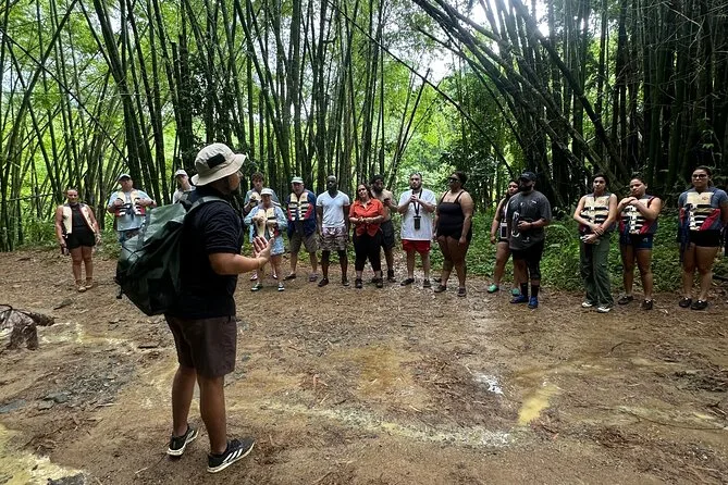 O passeio inclui transporte com ar-condicionado saindo de San Juan ou regiões próximas, entrada na floresta de El Yunque, guia local licenciado que compartilha histórias durante a trilha, coletes salva-vidas para todas as atividades aquáticas como tobogãs e saltos, frutas frescas da estação após a trilha e banho, além de áreas para troca de roupa para seu conforto antes do retorno.
