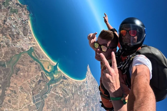 Seu dia inclui todo o equipamento necessário para o salto, como macacão e óculos, uma rápida orientação com seu instrutor no aeródromo de Portimão, o salto tandem a 15.000 pés sobre a costa do Algarve, além de um certificado comemorativo após o pouso — e óculos de sol se você adicionar o vídeo à sua reserva.