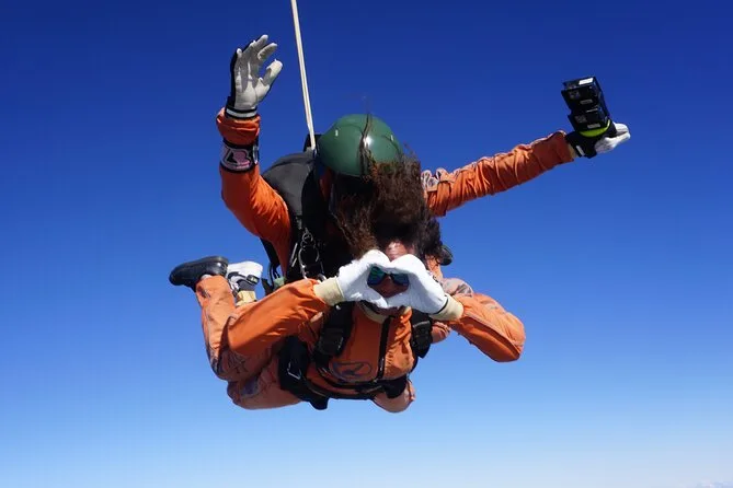 Seu coração vai disparar enquanto você se prepara no aeródromo de Portimão antes de voar alto para um salto tandem a 15.000 pés sobre o Algarve. Após uma rápida instrução e voo panorâmico, viva um minuto de queda livre antes de descer suavemente — terminando com um certificado de salto na mão e um sorriso que não sai do rosto.