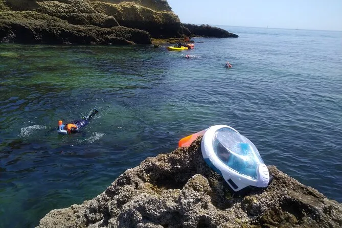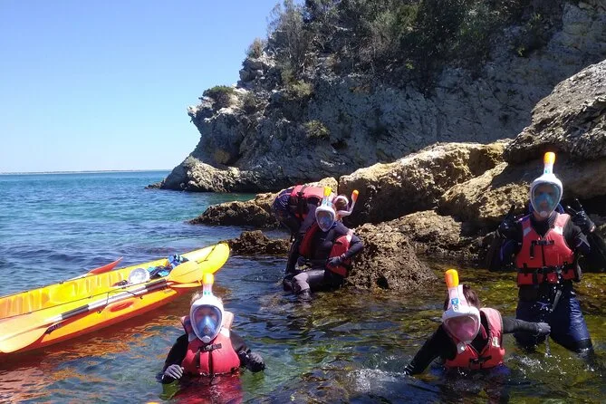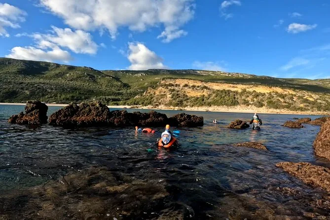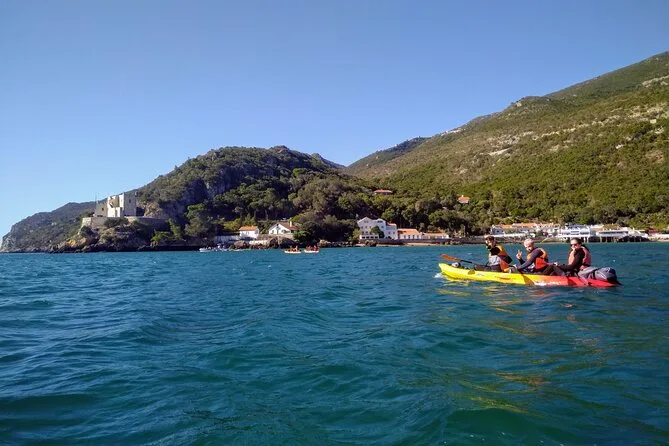 Seu dia inclui caiaques para três pessoas com remos e equipamentos de segurança; roupa de neoprene com meias e luvas; todo o equipamento de snorkel; lanches durante as paradas; seguro pessoal; almoço-piquenique na praia com suco de uva caseiro; café ou chá; além de transporte privado se optar pelo pickup em Lisboa — e termina com um brinde ao vinho do porto caseiro do João antes de voltar pela estrada com vistas das montanhas.